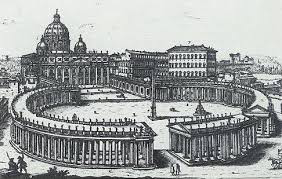 Devi sapere che fino alla metà del ‘600 quest’area si presentava come un vastissimo spiazzo sterrato, al centro della quale spiccava, isolato, l’obelisco egizio. Erano già stati elaborati vari progetti di una piazza ottagonale o rettangolare, ma nessun architetto o urbanista aveva escogitato una soluzione che tenesse conto delle decine di migliaia di persone che affluivano nella piazza nelle celebrazioni solenni.